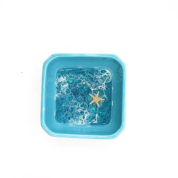 Ocean wave resin on turquoise dish to match your cheese board. Starfish included!